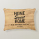 Ein personalisiertes Kissen, das mit einem hellen Holzhintergrund und dem Zitat "Zuhause Sweet Zuhause" einen Hintergrund aufweist. Fügen Sie dem Produkt den Nachnamen Ihrer Familie hinzu, um ihm eine persönliche Touch zu geben.