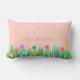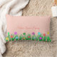 Zuhause süße Zuhause Blume und grüne Gras Pflanze auf hellkorallenrosa Lumbar Kissen. Text auf der Vorderseite kann angepasst werden. Ein tolles Geschenk für alle!