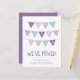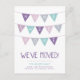 Niedliches und einfaches, modernes Ankündigungsdesign mit einem bezaubernden Mehrfarbenbuntflaggenbanner, das ZUHAUSE SWEET ZUHAUSE in einem handgeschriebenen Schriftart mit Platz zum Hinzufügen Ihrer neuen Adresse unten sagt. Fügen Sie eine Meldung auf der Rückseite hinzu oder verließ leer, um eine handschriftliche Notiz zu schreiben. Klicken Sie auf die Schaltfläche IT CUSTOMIZE, um Schriftart anzupassen, Text zu verschieben und Ihr eigenes einzigartiges Postkartendesign zu erstellen.