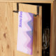 Personalisiertes rosa Teetuch mit bunten Wellen.