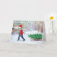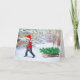 Diese Weihnachtskarte wurde aus einem Foto eines Jungen erstellt und im Hintergrund mit schneebedecktem Wald gespickt. Ich fügte den frisch geschnittenen Weihnachtsbaum dem Schlitten und einem Kardinal hinzu. (Junge, der Weihnachtsbaum-Zuhause mitbringt) Es gibt einen drinnen Gruß: "Möge deine Zuhause warm sein und am Weihnachtsfeiertag mit Liebe gefüllt sein."