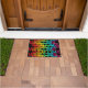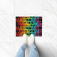 Hier ist eine bunte Zuhause Begrüßungsmatte in einem einzigartigen, bunten und abstrakten Design mit dem Wort Willkommen in einem einzigartigen, alles über Muster, das die Eingangstür Ihres Wohnsitzes im Stil dekoriert. Das Design ist leicht auf einem schwarzen Hintergrund gedruckt.