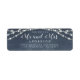 Rustikale Feen-Saitenleuchten Hochzeitsreportadresse-Label mit dem Text der Zukunft Mr. und Mrs. in weißer, eleganter Schrift-Kalligraphie auf einem dunkelblauen Hintergrund. Fügen Sie einfach Ihren Namen und Ihre Adresse hinzu. Exklusiv für Sie entworfen von Happy Dolphin Studio. Wenn Sie Hilfe oder passende Produkte benötigen, kontaktieren Sie uns bitte unter happydolphinstudio@outlook.com. Wir helfen Ihnen gerne, Ihre Hochzeit zum schönsten Tag zu machen!