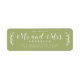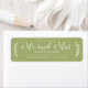 Chic, modern und einfach Brautadressen-Label mit dem Text der Zukunft Mr. und Mrs. in weißer, eleganter Schrift Kalligraphie auf einem Blatt grünen Hintergrund mit einer stilvollen Touch von rustikalem Blattwerk. Fügen Sie einfach Ihren Namen und Ihre Adresse hinzu. Exklusiv für Sie entworfen von Happy Dolphin Studio. Wenn Sie Hilfe oder passende Produkte benötigen, kontaktieren Sie uns bitte über unseren Chat. Wir helfen Ihnen gerne, Ihre Hochzeit zum schönsten Tag zu machen!