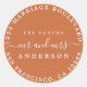 Chic, modern und einfach Hochzeitskalligraphie klassischer Rundaufkleber mit dem Text der Zukunft Mr. und Mrs. in weißer, eleganter Schriftzeichen und stilvoller Typografie auf verbranntem orangefarbenem Hintergrund. Fügen Sie einfach Ihren Namen und Ihre Adresse hinzu. Exklusiv für Sie entworfen von Happy Dolphin Studio. Wenn Sie Hilfe oder passende Produkte benötigen, kontaktieren Sie uns bitte unter happydolphinstudio@outlook.com. Wir helfen Ihnen gerne, Ihre Hochzeit zum schönsten Tag zu machen!