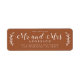 Chic, modern und einfach Brautadressen-Label mit dem Text der Zukunft Mr. und Mrs. in weißer, eleganter Schrift Kalligraphie auf Terrakotta Hintergrund mit einer stilvollen Touch von rustikalem Blattwerk. Fügen Sie einfach Ihren Namen und Ihre Adresse hinzu. Exklusiv für Sie entworfen von Happy Dolphin Studio. Wenn Sie Hilfe oder passende Produkte benötigen, kontaktieren Sie uns bitte über unseren Chat. Wir helfen Ihnen gerne, Ihre Hochzeit zum schönsten Tag zu machen!