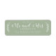 Chic, modern und einfach Brautadressen-Label mit dem Text der Zukunft Mr. und Mrs. in weißer, eleganter Schrift Kalligraphie auf einem Laurel grünen Hintergrund mit einer stilvollen Touch von rustikalem Blattwerk. Fügen Sie einfach Ihren Namen und Ihre Adresse hinzu. Exklusiv für Sie entworfen von Happy Dolphin Studio. Wenn Sie Hilfe oder passende Produkte benötigen, kontaktieren Sie uns bitte über unseren Chat. Wir helfen Ihnen gerne, Ihre Hochzeit zum schönsten Tag zu machen!