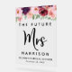 Ein elegantes Akrylat-Begrüßungszeichen für ihr Brautparty mit "The Future Mrs." in einem großen, eleganten Drehbuch und einfacher Typografie, Aquarellbouquets aus Bordeaux und Rosa Blüten und Weissgrün und dem zukünftigen verheirateten Namen der Braut, Vornamen und Duschdatum.