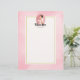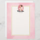 Letterhead mit dem Text: Future mrs, mit Ihrem personalisierten Namen. Illustriert mit einer glücklich lächelnden braunen Haarbräte. Sie trägt ein weißes Hochzeitskleid und hält einen Strauß Blume mit einem hübschen Schleier im Haar. Set in einem rosa ovalen Kammerrahmen mit geschliffenem Rahmen. Ein weiches, rosa Aquarellbild für den Hintergrund mit einem cremefarbenen Rechteck, das oben mit einem goldfarbenen Rahmen platziert ist.