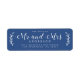 Chic, modern und einfach Hochzeitsreklabel mit dem Text der Zukunft Mr. und Mrs. in weißer, eleganter Schrift Kalligraphie auf einem klassisch blauen Hintergrund mit einer stilvollen Touch rustikalen Blattwerks. Fügen Sie einfach Ihren Namen und Ihre Adresse hinzu. Exklusiv für Sie entworfen von Happy Dolphin Studio. Wenn Sie Hilfe oder passende Produkte benötigen, kontaktieren Sie uns bitte über unseren Chat. Wir helfen Ihnen gerne, Ihre Hochzeit zum schönsten Tag zu machen!