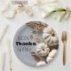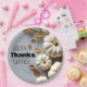 Glückliche Thanksgiving-Day Paper Teller mit weißen Kürbis und Herbstblätter auf grauem Hintergrund