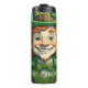 🍀 Ein junges Mädchen, das als Kobold verkleidet ist, mit Aufregung und einem wunderschön umhüllten goldenen Geschenk. Sie trägt ein lebendiges, grünes Outfit mit einem Hut, der mit Kleeblättern, einer Bogen-Krawatte und goldenen Knöpfen geschmückt ist. Der Hintergrund erfasst eine festliche Stadtszene mit Konfetti in der Luft und verstärkt den fröhlichen Geist des St. Patrick’s Day. Das Bild strahlt Glück, Glück und Feier aus. ✨