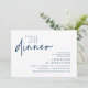 Markieren Sie den Anfang Ihres Lebens mit Eleganz mit unserer zeitgenössischen klassischen modernen Navy Blue Hochzeitsfeier Party Einladungskarte "Happily Ever After Dinner". Diese Einladung eignet sich perfekt für Paare, die ihren fröhlichen Anlass ausdehnen und mit einem Hauch von Verspieltheit die Bühne für eine unvergessliche Veranstaltung geben. Das zeitlose Design des Drehbuchs verleiht Ihren Festlichkeiten eine Touch raffinierten Charmes. Diese von TeeshaDerrick entworfene Einladung verspricht, Ihre Liebe schön zu erfassen.