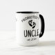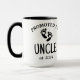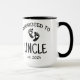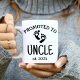 Diese Coffee Tasse enthält die Typografie des First Time Onkel Skripts für die Schwangerschaftsankündigung.