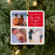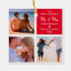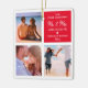 Foto Collage frisch verheiratet 2021 Weihnachtsschmuck mit einem schicken, weißen Hintergrund, der in jede Farbe verändert werden kann, 3 Fotos von Ihnen und Ihrem Partner, die Worte "unsere ersten Weihnachten mr & mrs", ein niedliches Herz, Ihre Namen und das Jahr. Auf der Rückseite sind weitere 3 Bilder für Sie zu personalisieren.