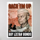 Dieses Vintage WW2 Poster zeigt General Dwight Eisenhower mit einer Karte und Ferngläsern. Hinter ihm stehen Truppen, Panzer und Flugzeuge, die in den Kampf ziehen. Sie lautet: "Back "Em Up Buy Extra Bonds". Feiern Sie die Geschichte Amerikas und des Zweiten Weltkriegs mit diesem digital restaurierten Vintagen Kriegsposter aus dem The War Is Hell Store. Woll mehr Militär- und Geschichtsprodukte? Karo