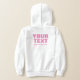 Eigener Text / Slogan / Worte / Zitat hier Vorlage Kindermädchen Groß / Groß Schriftart Grundfarbe Rosa und Weiß Rückseite Pullover Hoodie gedruckt.