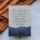 Dieser Rückzug in die Berge lässt uns die Einladungskarte feiern, ist perfekt für ein modernes Ereignis. Das Design zeichnet sich durch eine ruhige blaue Wasserfarbengebirge aus, in der im Vordergrund ein immergrüner Wald steht. Diese Einladung eignet sich perfekt für eine Verlobungsfeier, einen Junggeselinnen-Abschied, ein Event oder ein Party.