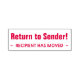 Dieses einfache Design aus Gummi-Briefmarke beinhaltet die Nachrichten "Return to Sender!" und "~ RECIPIENT HAT SICH VERÄNDERT ~". Es kann verwendet werden, um anzugeben, dass die empfangene Post an die falsche Adresse geliefert wurde, und sollte an den Absender zurückgeschickt werden.