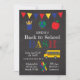 Feiern Sie den ersten Schultag mit einem Rücken zur Schule! Diese Einladung ist perfekt für ein lustiges Party. © 2023 Tea Olive Co.