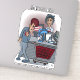 Aufkleber mit einem lustigen Cartoon über die Einkäufe im Schulalter. Hintergrund und Text können personalisiert sein. Originale Kunstwerke von DB Cartoon.