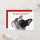 Boston Terrier zurück zur Schule, Begrüßungskarten von Lehrer. Ein niedlicher Boston Terrier vorne sieht nach oben. Beispielworte lauten: "Sind Sie mein Lehrer?" Fügen Sie den Studierenden auf der Rückseite Ihre persönliche Nachricht mit weißem, bedrucktem Text in dunkelrot hinzu. Wählen Sie die Option Drucken oder downloaden aus.
