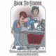 Aufkleber mit einem lustigen Cartoon über die Einkäufe im Schulalter. Hintergrund und Text können personalisiert sein. Originale Kunstwerke von DB Cartoon.