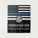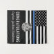 Dieses Design verfügt über eine Polizeiflagge mit schwarz-weißen Streifen und einen dünnen blauen Streifen. Passen Sie den Namen des im Ruhestand befindlichen oder schließend Vollzugsbeamten, Sheriffs, Kapitäns oder Chefs an. Ein guter Weg, um dem neuen Rentner oder Absolvent für ihren Ruhestand oder Abschluss von der Polizeiakademie zu gratulieren.