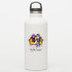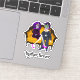 Romantische, lustige und bunte Vinyl-Aufkleber für immer, die ein paar Sugar Skulls mit modernen lila Haaren auf einem Vintagen Velour gelben Loveseseat Sofa oder Couch darstellen. Ursprüngliche Kunst von Suki's, alle Rechte vorbehalten.