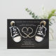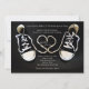 Eine lässige Hochzeitseinladung, die traditionelle Schwarzweiss-Leinwandspitze Turnschuhe, die Schuhspitzee kennzeichnet, treffen sich in der Mitte, die ein Herz bildet. Die Karte ist einfach, mit Ihrer Benennung, Schriftart, Schriftartfarbe und Wahl von sechs Papiersorten besonders anzufertigen.