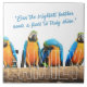 "Vier prächtige Blauara sitzen Seite an Seite — mutig, strahlend und wunderschön zusammen. Gekrönt von dem herzlichen Zitat 'Selbst die strahlendste Feder braucht eine Herde, um wahrhaft zu leuchten', feiert dieses Design die unzerbrechliche Verbindung der Familie auf die lebendigsten, farbenfrohsten Weise. Das Wort FAMILIE steht groß und stolz über dem Bild, denn manche Dinge verdienen es, mutig gesagt zu werden. Für jede Familie, die zusammen fliegt, zusammen bleibt und zusammen strahlt."