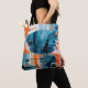 Eine dynamische abstrakte Komposition, die geometrische Formen, fette Orange- und Blautöne und architektonische Elemente vereint. Ein modernes, auffälliges Design, das sich perfekt für zeitgenössische Dekoration und Mode eignet.