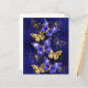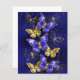 Zusammensetzung von luxuriösen Saphir- und Goldschmuckschmetterlingen auf blauem, texturiertem Hintergrund.