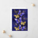 Zusammensetzung von luxuriösen Saphir- und Goldschmuckschmetterlingen auf blauem, texturiertem Hintergrund.