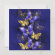Zusammensetzung von luxuriösen Saphir- und Goldschmuckschmetterlingen auf blauem, texturiertem Hintergrund.