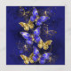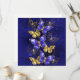 Zusammensetzung von luxuriösen Saphir- und Goldschmuckschmetterlingen auf blauem, texturiertem Hintergrund.