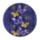 Zusammensetzung von luxuriösen Saphir- und Goldschmuckschmetterlingen auf blauem, texturiertem Hintergrund.