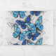 Vertikale Zusammensetzung von Realität, Blue and White Morpho Butterflies on gray textured background. Morpho blue butterfly.