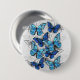 Vertikale Zusammensetzung von Realität, Blue and White Morpho Butterflies on gray textured background. Morpho blue butterfly.