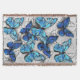 Vertikale Zusammensetzung von Realität, Blue and White Morpho Butterflies on gray textured background. Morpho blue butterfly.