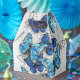 Vertikale Zusammensetzung von Realität, Blue and White Morpho Butterflies on gray textured background. Morpho blue butterfly.
