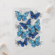 Vertikale Zusammensetzung von Realität, Blue and White Morpho Butterflies on gray textured background. Morpho blue butterfly.