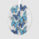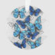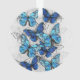 Vertikale Zusammensetzung von Realität, Blue and White Morpho Butterflies on gray textured background. Morpho blue butterfly.