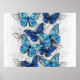 Vertikale Zusammensetzung von Realität, Blue and White Morpho Butterflies on gray textured background. Morpho blue butterfly.
