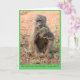 Niedlicher Babypavian, der zu Mittag isst. Mitteilungsinnere liest "mich sah dieses und dachte an Sie!" Fügen Sie Ihre eigene Mitteilung für eine persönliche Touch hinzu.