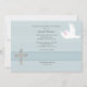 Ein strukturierter, blauer Hintergrund wird durch ein blaues Band und ein dekoratives Kreuz geschnitten. Auf der oberen rechter Ecke fliegt eine weiße Taube oben. Eine reizende Einladung für irgendeine religiöse Feier. br/>