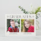 Diese Doppel-Abschlussfeier lädt zu zwei Absolventen ein. Die moderne Ankündigung umfasst zwei Fotos (eines für jeden Absolvent) mit unten stehenden Vorlagen, um ihre Namen und Schulen hinzuzufügen. Oben wird das Wort "Absolventen" in minimalistischer Typografie geschrieben und durch "20" an einem Ende und "22" am anderen Ende gerahmt, um einen zeitgenössischen Look mit einer neutralen grauen Farbpalette zu erhalten. Auf der Rückseite, fügen Sie Ihre Abschlussfeier Details. Ideal für einen doppelten Abschluss mit Zwillingen, Geschwistern, Schwestern und Brüdern!