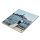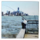 Entwürfe von Susan Savad - Ein Fischer bereitet sich darauf vor, an einem schönen sonnigen Nachmittag mit der Skyline von Manhattan in der Ferne vom Steg Hoboken New Jersey zu fischen. Der teilweise fertig gestellte Freedom Tower ist in der Ferne zu sehen.