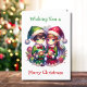 Personalisierte Weihnachtskarte für Kinder. Ein niedlicher Junge und ein Elf, der Spielzeuge hält. Eine süße ai Aquarell-Anime Weihnachtsillustrierung. Sie können eine personalisierte Meldung in die Karte einfügen. Inside page ist eine Farbseite.