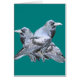 Zwei Raben auf aquamarinen Geschenken.